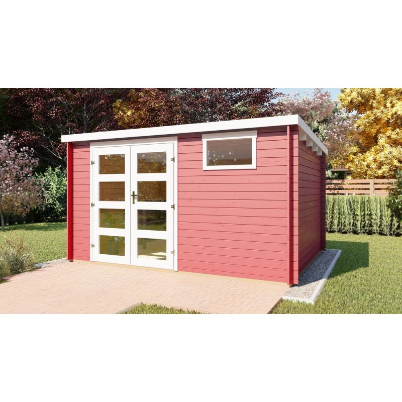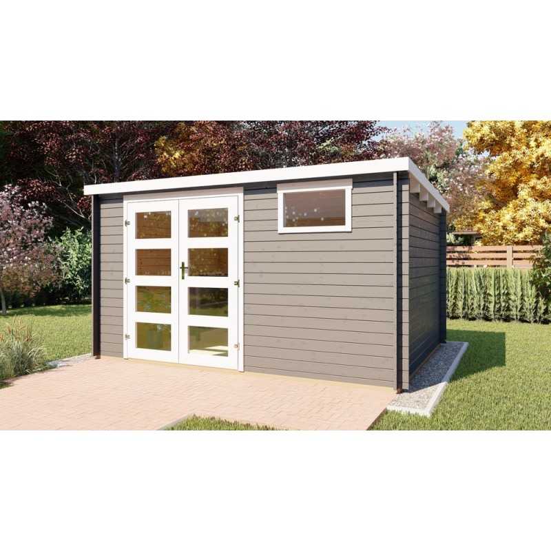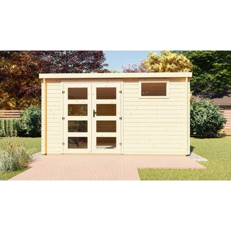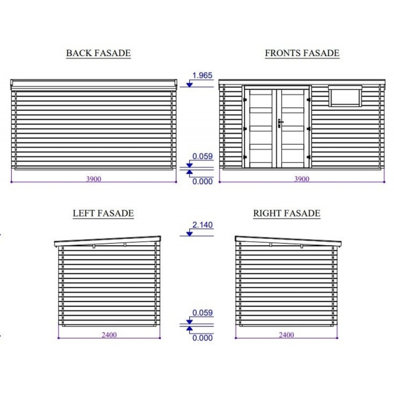 La caseta de jardín Leo de 3,9 mx2,4 m/28 mm de grosor es una habitación exterior perfecta para utilizar como oficina de jardín/estudio de gimnasia. Moderna y práctica. Con tablas de suelo T&G de 19 mm, vigas tratadas a presión y fieltro.