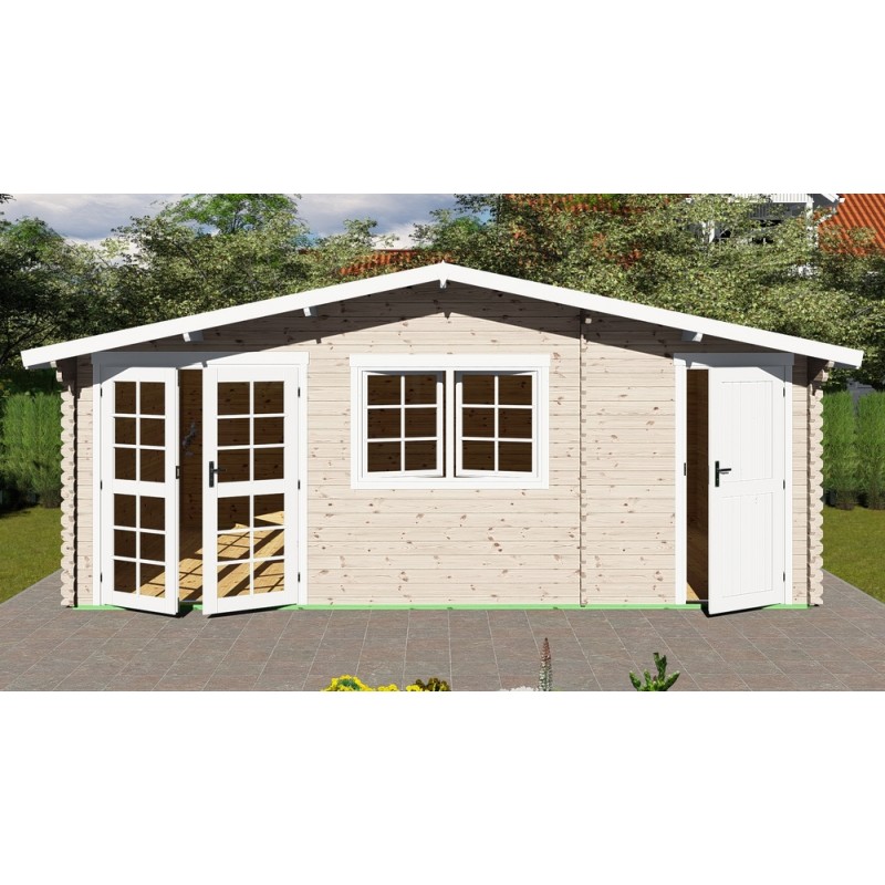 La caseta de jardín Johanna de 6mx5m/ 40mm de grosor es una habitación exterior perfecta para utilizar como oficina de jardín/estudio de gimnasia y zona de almacenamiento adicional. Moderna y práctica. Mejor que cualquier competidor, esta caseta viene completada con tablas de suelo T&G de 19mm, vigas tratadas a presión y tejas.