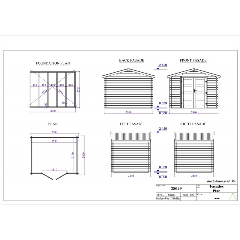Información adicional | Kit de montaje de soportes de cimentación tratados (40mmx60mm), cristal real en ventanas y puertas, cerradura de cilindro, manual de esquema del producto. |