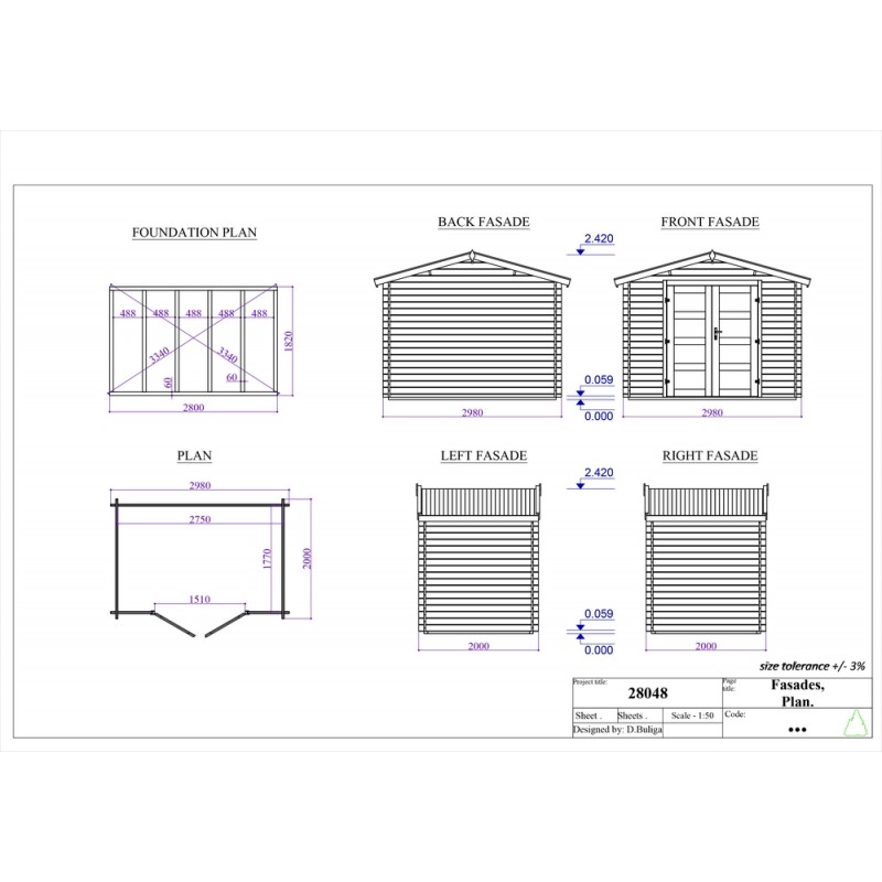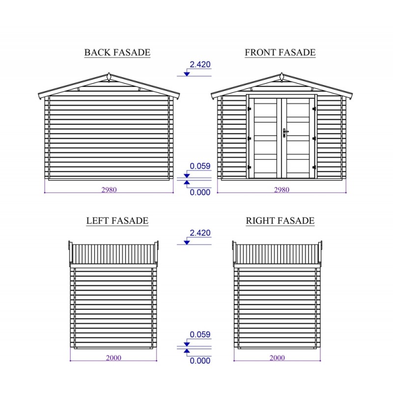 Información adicional | Kit de montaje de soportes de cimentación tratados (40mmx60mm), cristal real en ventanas y puertas, cerradura de cilindro, manual de esquema del producto. |