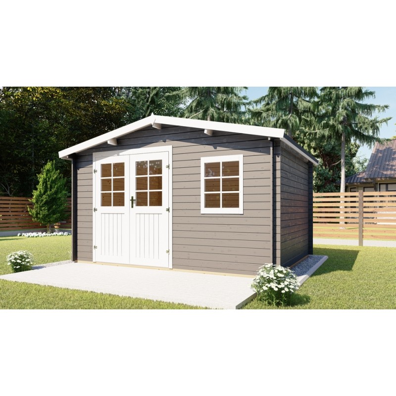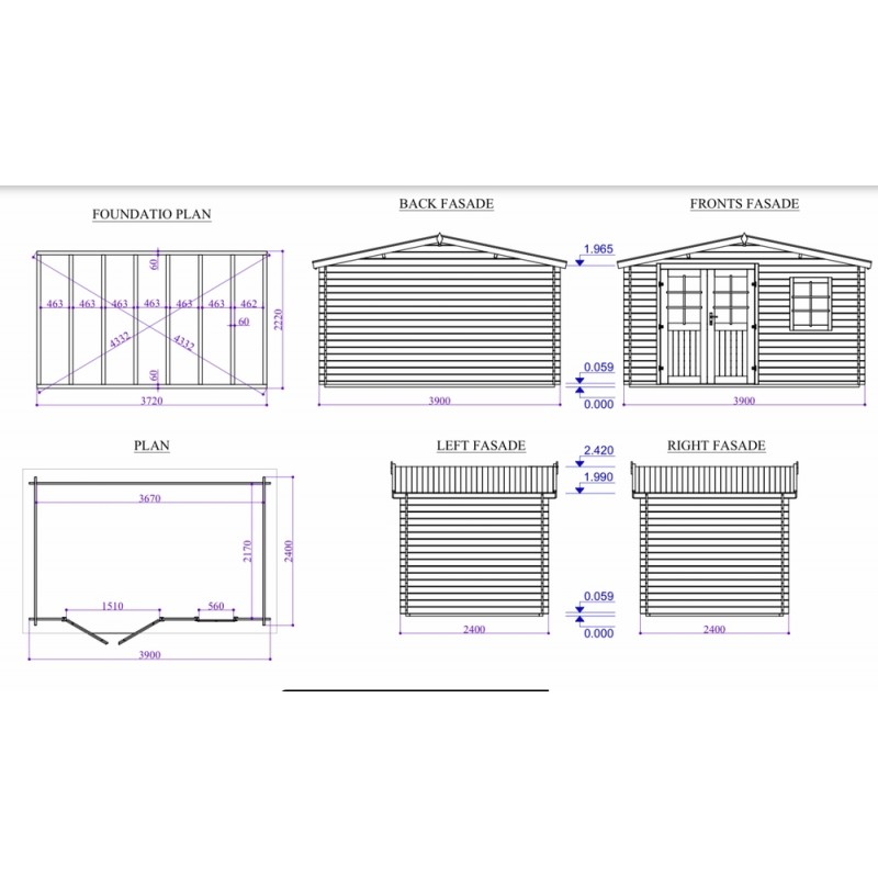La caseta de jardín Charli de 3,9 mx2,4 m/28 mm de grosor es una habitación exterior perfecta para utilizar como oficina de jardín/estudio de gimnasia. Moderna y práctica. Cuenta con tablas de suelo T&G de 19 mm, vigas tratadas a presión y tejas.