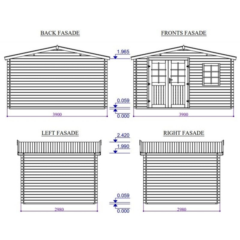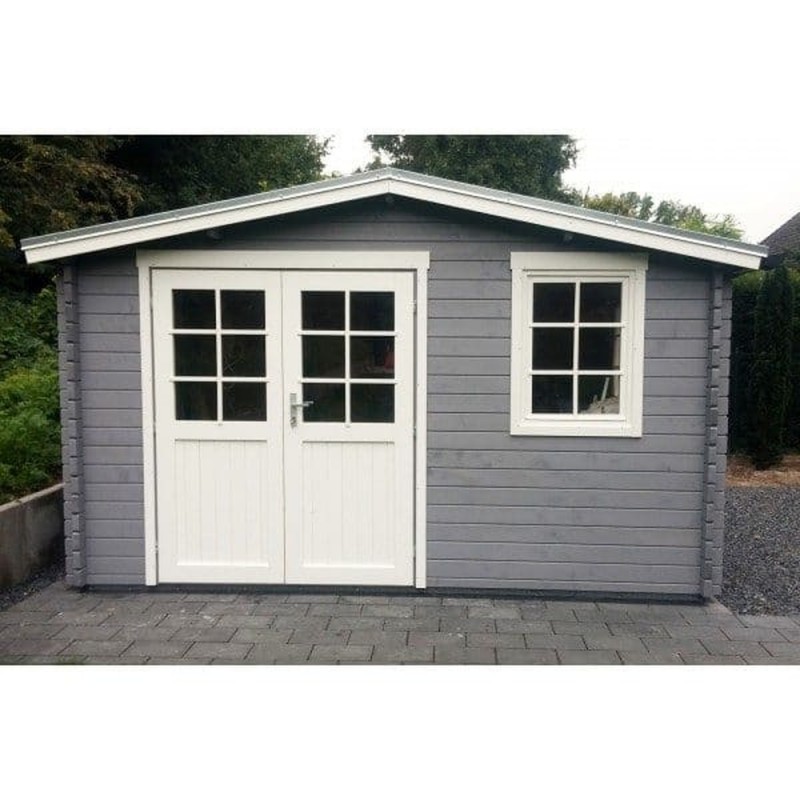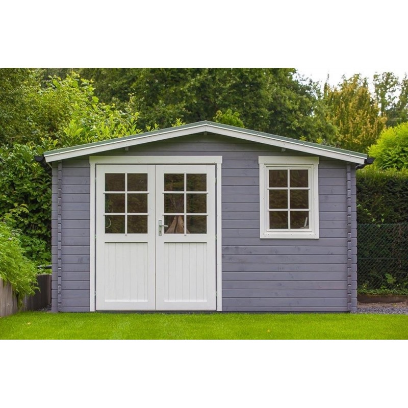 La caseta de jardín Charlie de de 3,9mx3m/28mm de grosor es una habitación exterior perfecta para utilizar como oficina de jardín/estudio de gimnasia. Moderna y práctica. Con tablas de suelo T&G de 19 mm, vigas tratadas a presión y tejas.