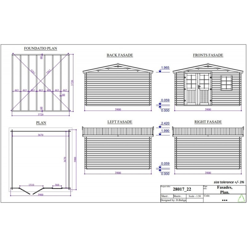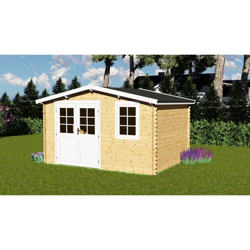 La caseta de jardín Charlie XXL de 3,9mx3,9m/28mm de grosor es una habitación exterior perfecta para utilizar como oficina de jardín/estudio de gimnasia. Moderna y práctica. Con tablas de suelo T&G de 19 mm, vigas tratadas a presión y tejas.