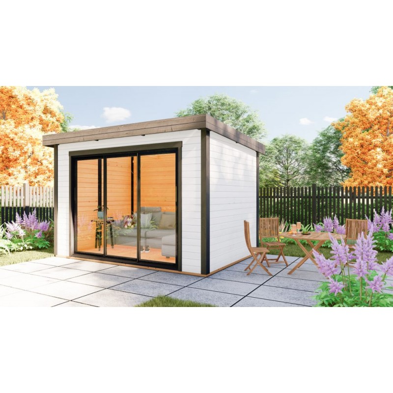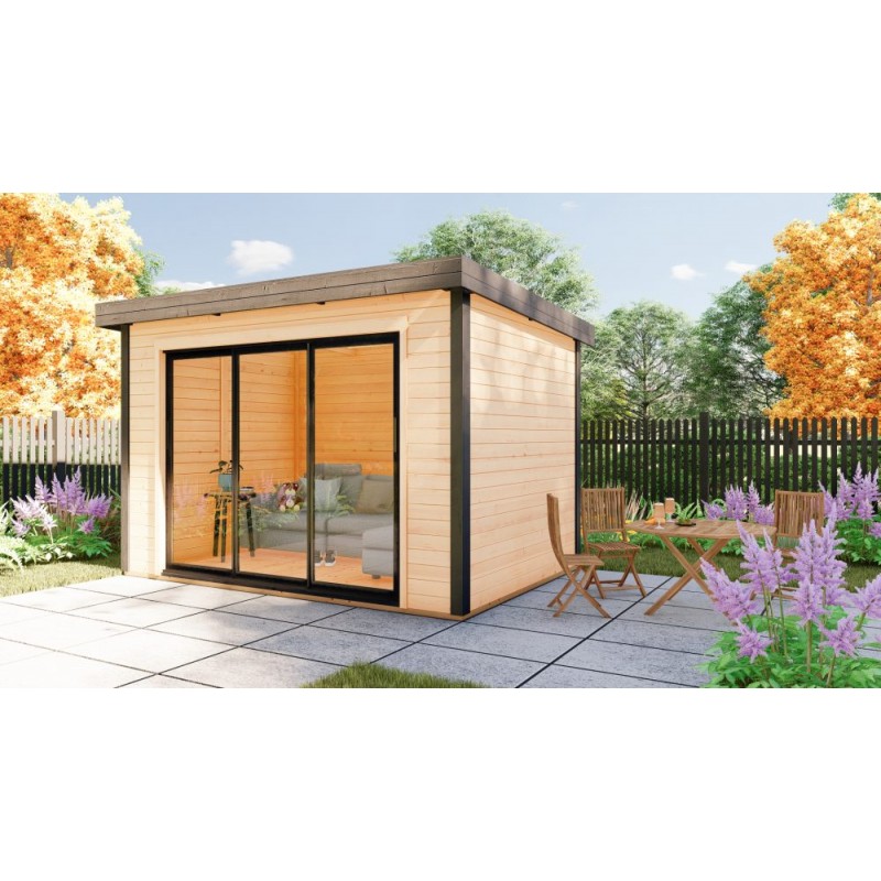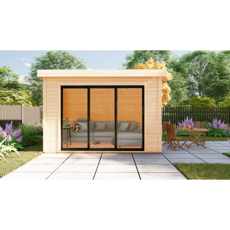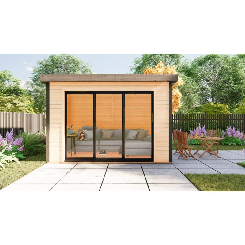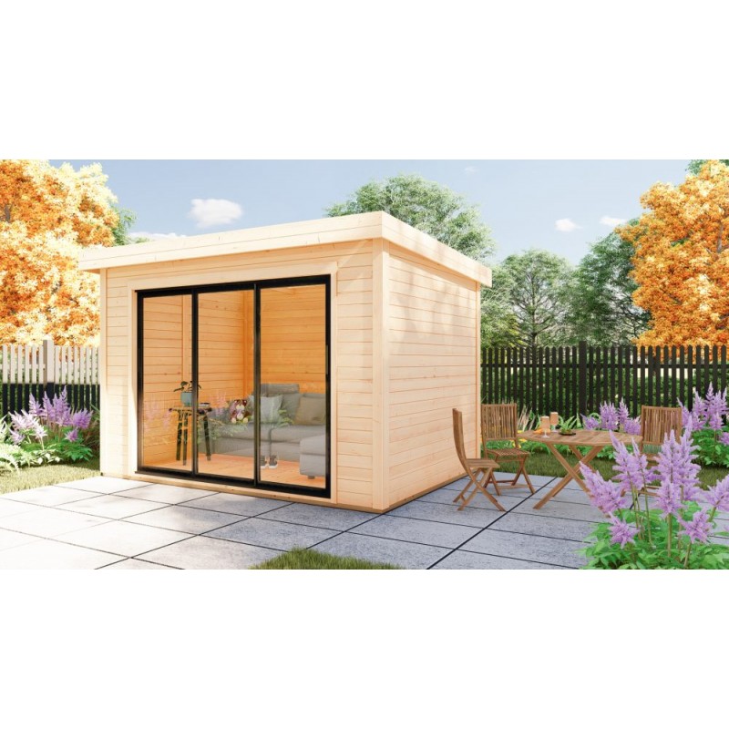 Material | Sala de jardín contemporánea de abeto nórdico de crecimiento lento, sin tratar |