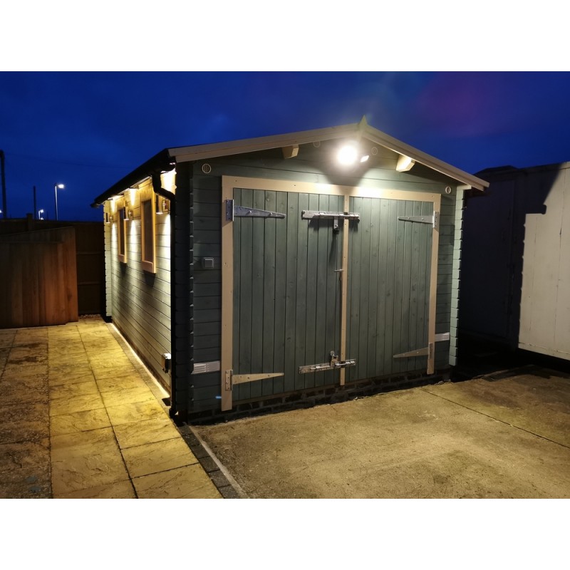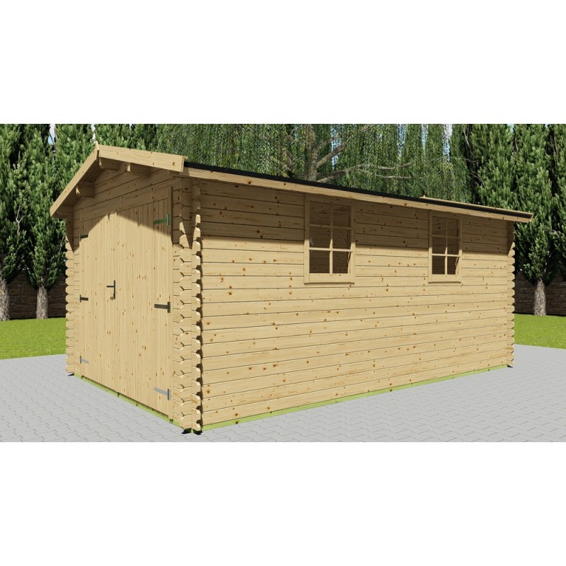 Garaje de madera es una gran alternativa a la compra de un edificio de hormigón caro. Las paredes del garaje están hechas de troncos entrelazados de 28 mm. Un lugar perfecto para mantener su coche seguro y a salvo de la lluvia y la nieve.