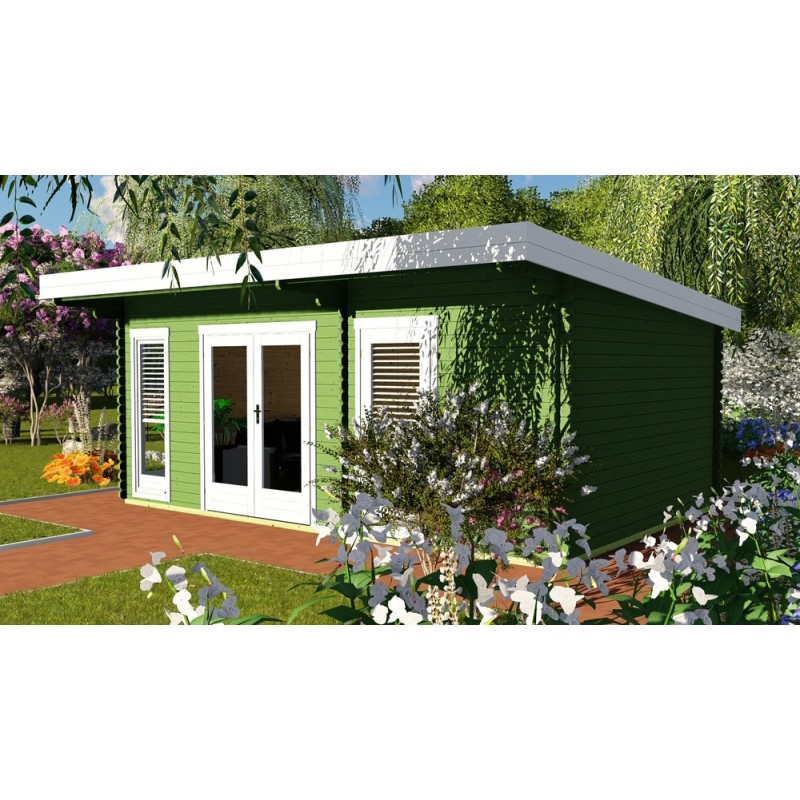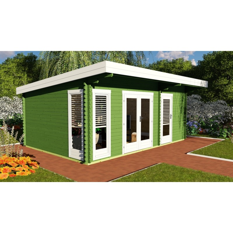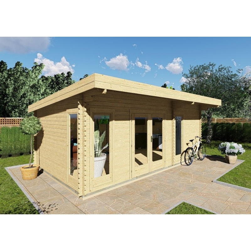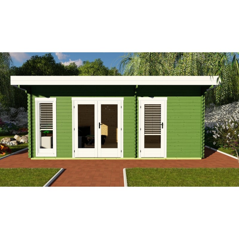 Oficina del jardín April 5.8mx3.9m + trastero/ 40mm de grosor es una habitación exterior perfecta para usar como oficina de jardín/estudio de gimnasia. Moderno y práctico. Las puertas dobles y las dos grandes ventanas practicables crean una cabaña luminosa y bien ventilada. El elegante exterior de la cabaña de madera añade sofisticación a cualquier jardín y su robusta construcción significa que disfrutará de su cabaña de madera durante muchos años.